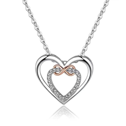 Heart-shaped Two-color Infinite 8-shaped Rhinestone Spring Necklace