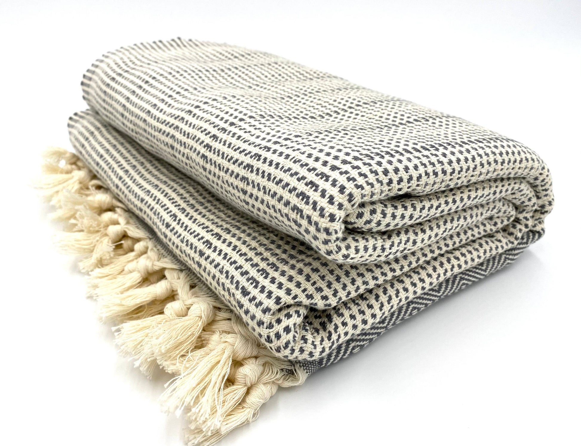 Our Hampton collection of premium Turkish Throw Blankets is loomed from 100% Turkish Cotton in a process that has been woven for centuries and finished with hand knotted fringe edging. Featuring a subtle Diamond weave pattern. These incredibly versatile Soft and Cozy throws are the ultimate year round blanket as they are light weight, highly absorbent, sand free, fast drying and even space saving.