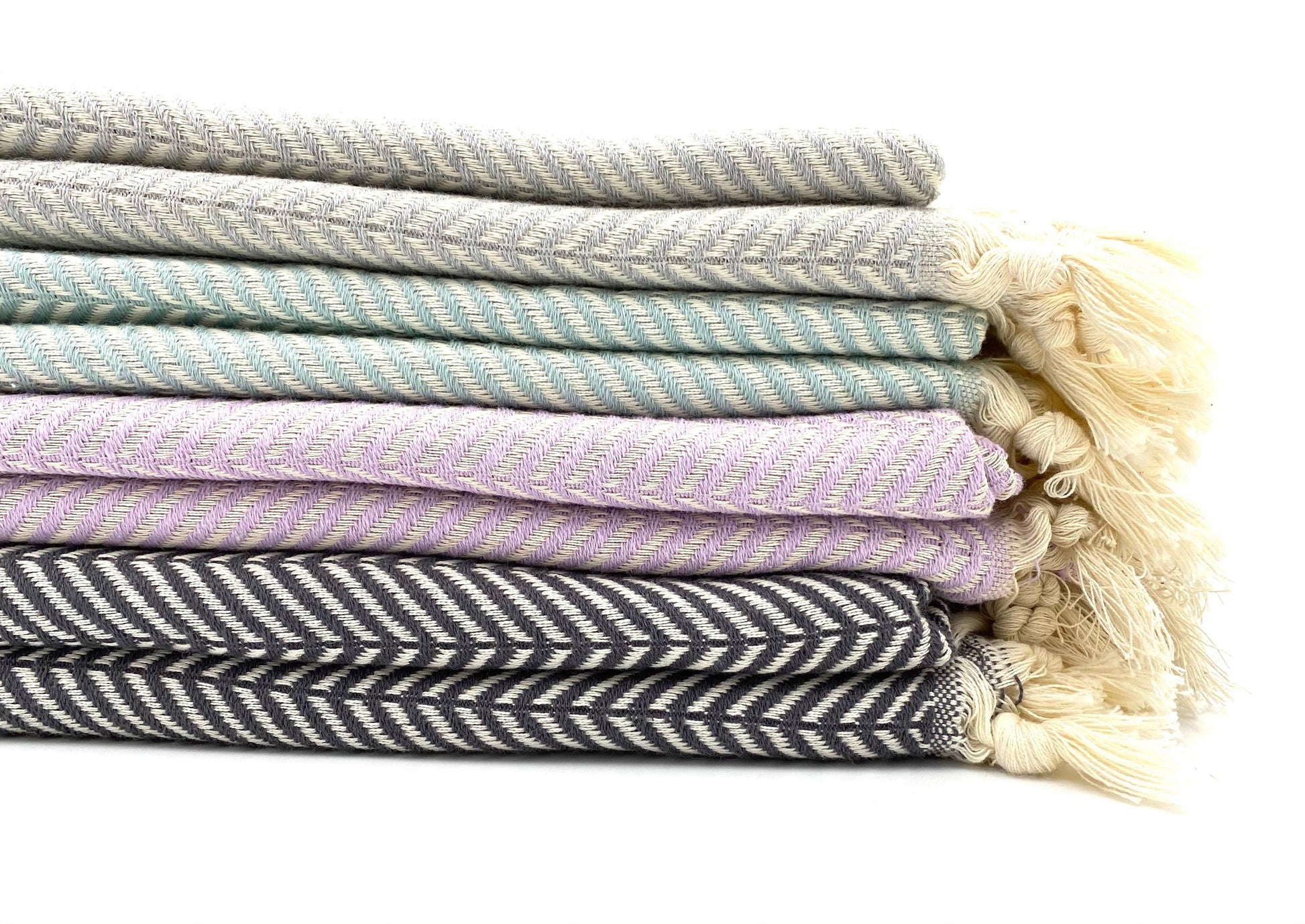 Our Keys collection of premium Turkish Throw Blankets is loomed from 100% Turkish Cotton in a process that has been woven for centuries. With a beautiful Herringbone weave which features a wide Herringbone pattern and finished with hand knotted fringe edging. These incredibly Soft and Cozy versatile throws are the ultimate year round blanket as they are light weight, highly absorbent, sand free, fast drying and even space saving.